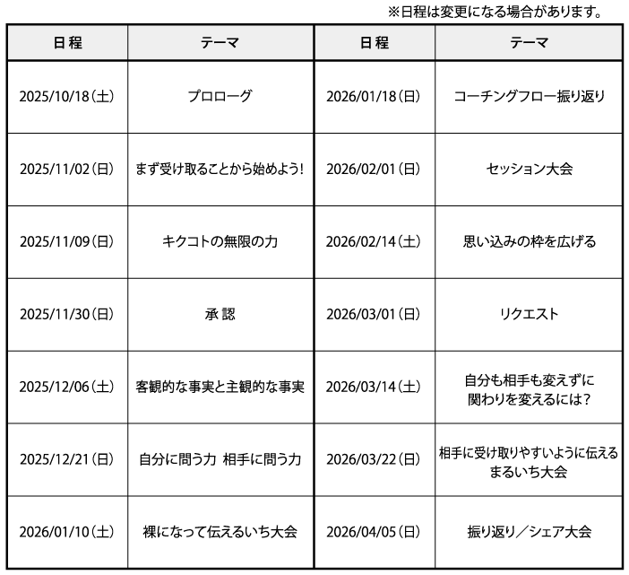 ※参加者の進捗によって進めて行く為、内容やテーマの開催日は変更に
